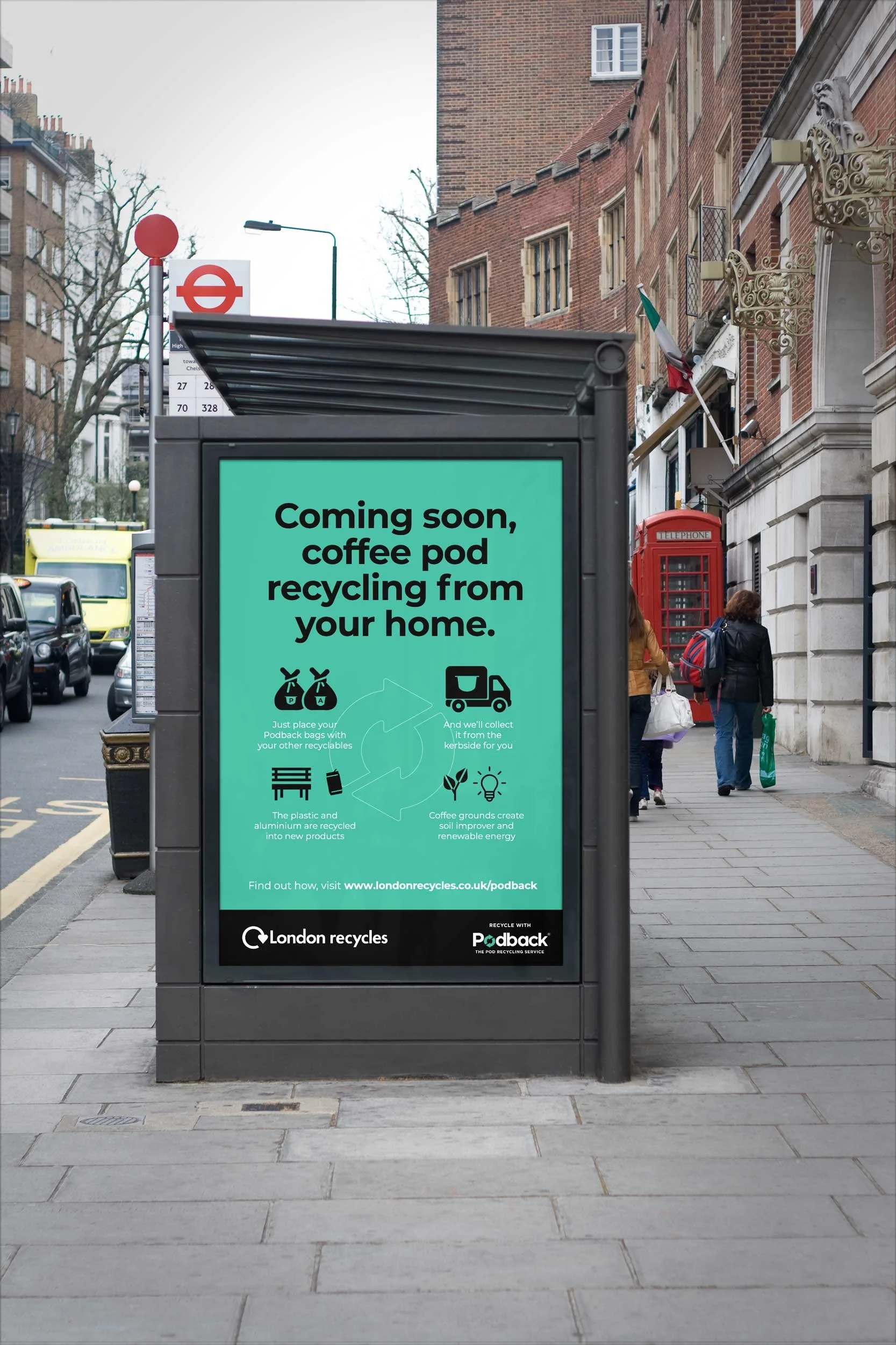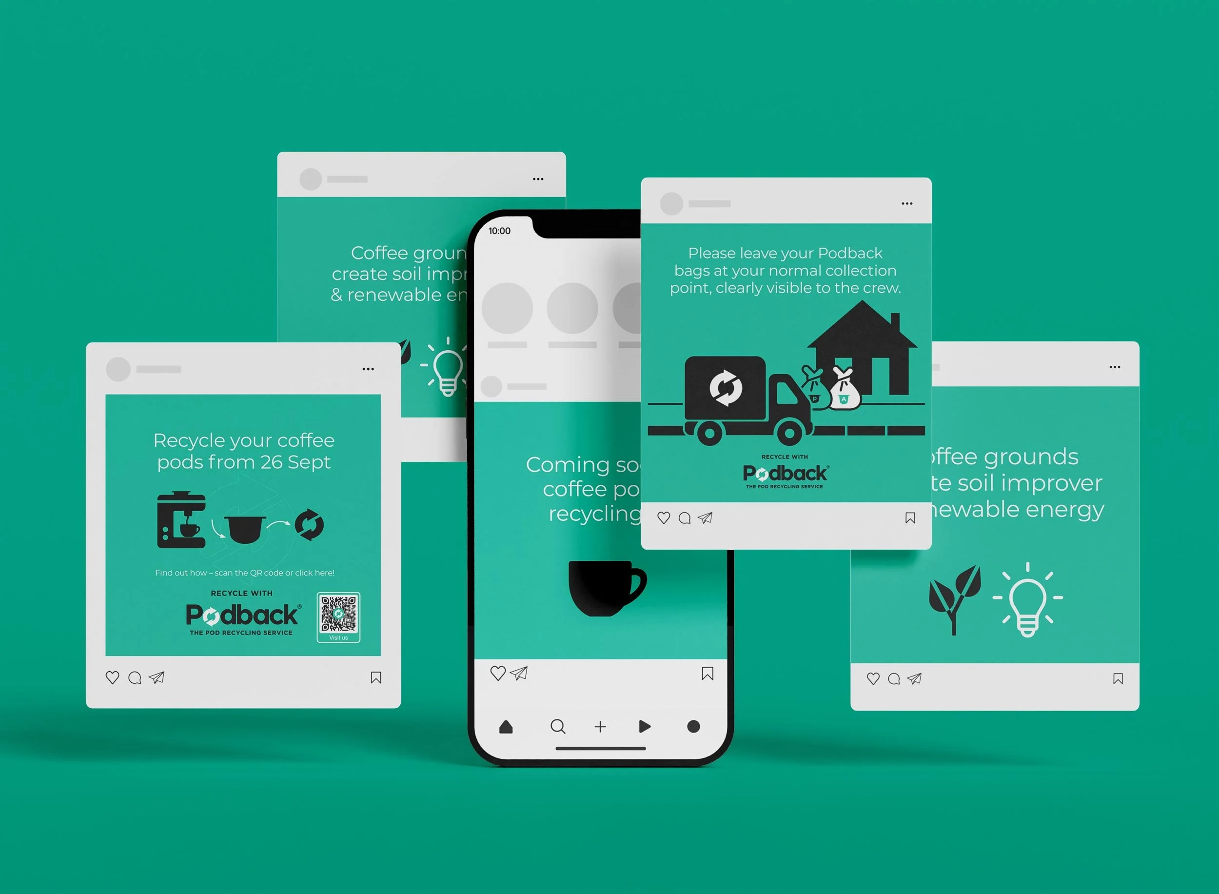 We worked with Podback and local authority partners across the UK to facilitate kerbside collections of pods as part of their household waste and recycling collection services and help achieve their Net Zero targets for 2030. This involved launching the Podback service to households and encouraging them to ‘sign up’ to order bespoke recycling bags to collect pods ready for collection.
